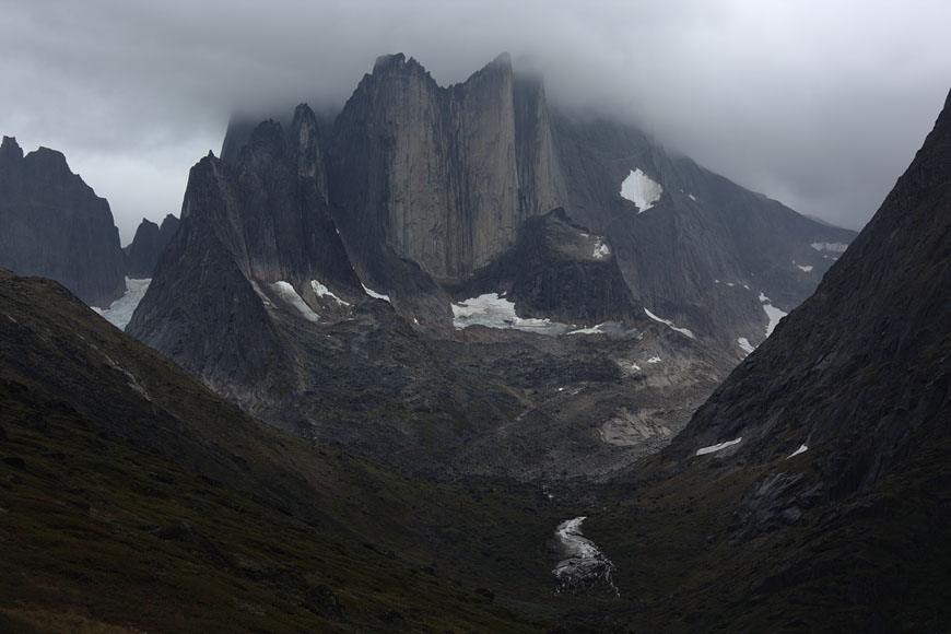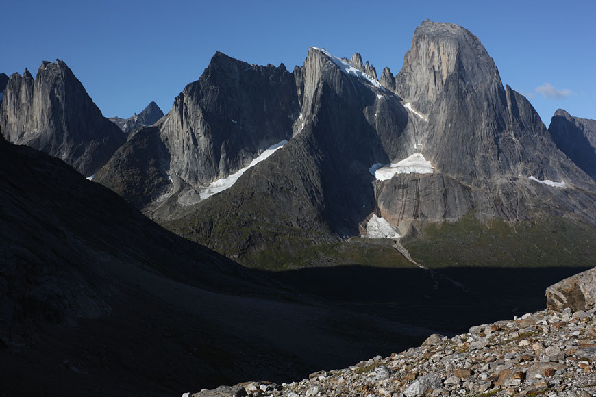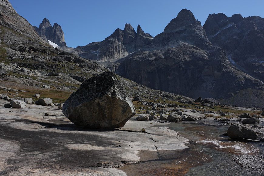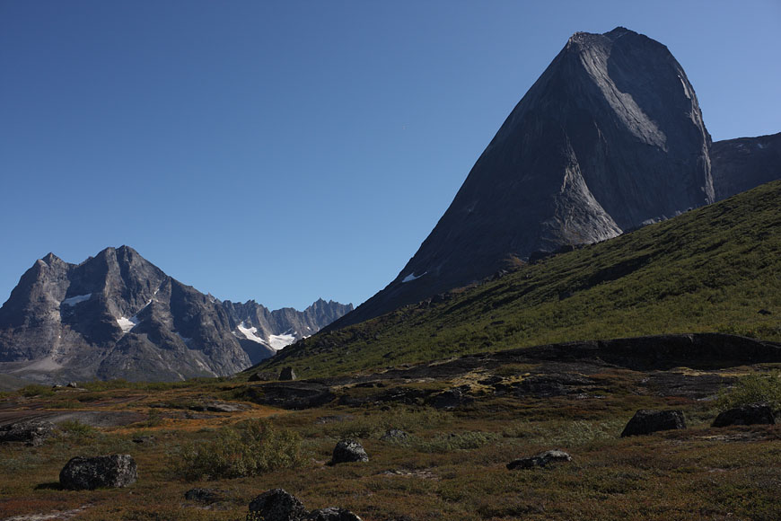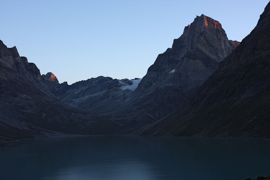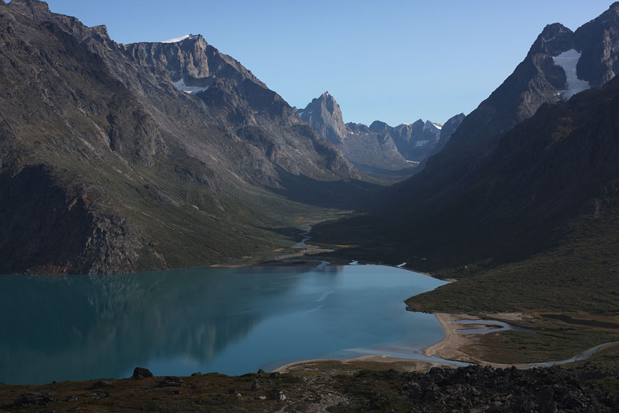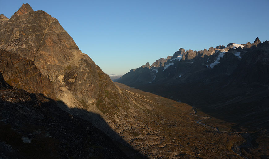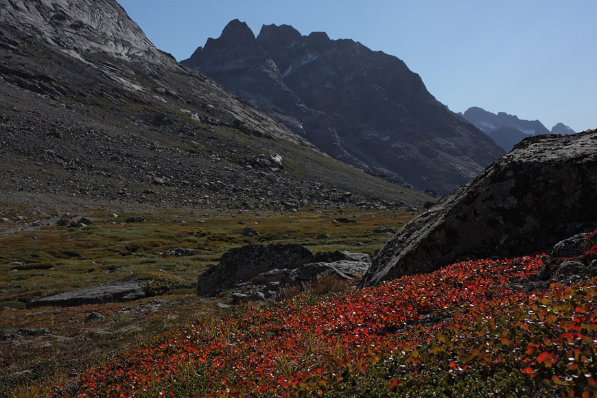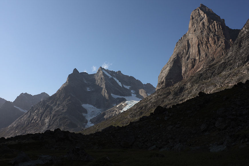 mountain range at the end of Tiningnertooq valley |