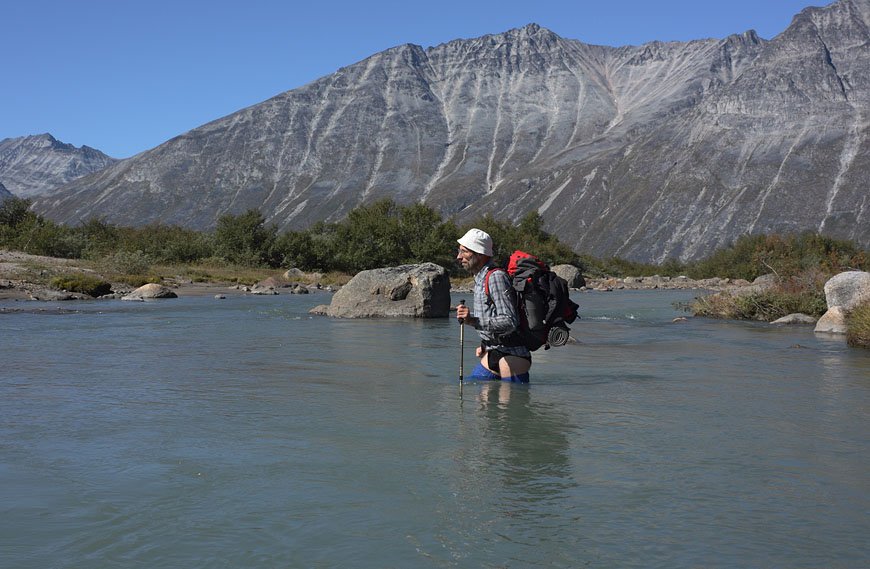 solo crossing the big Uliuiit glacier river is only sensible when conditions are perfect |