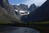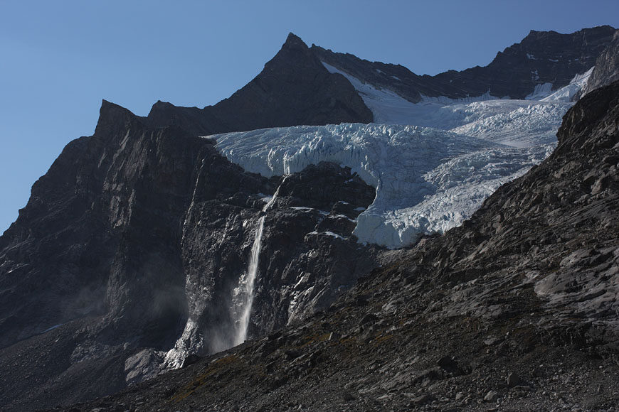 entering Tupaassat valley under hanging glaciers |