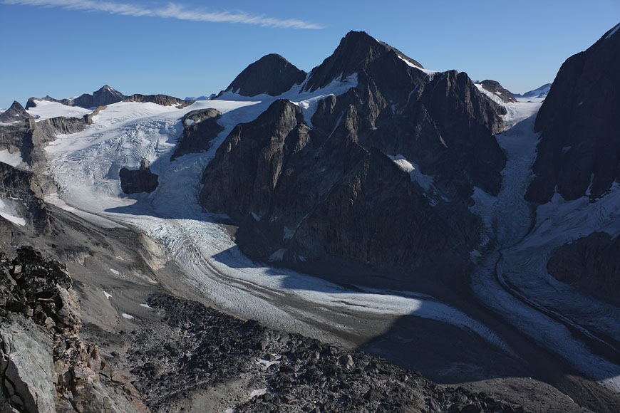 standing near to the dominant Ketil summit, towering more than 2000m above the sea, beeing still 500m below its summit |