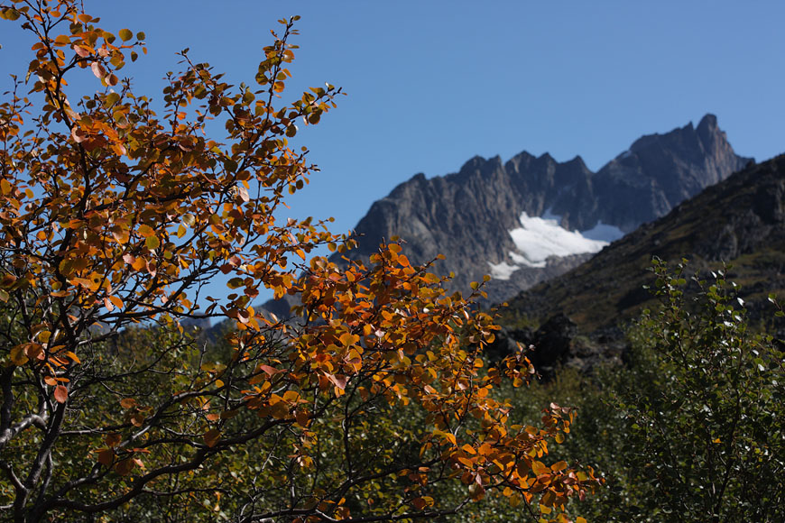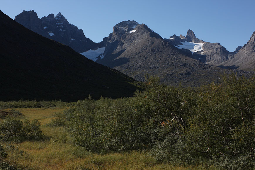 in Qinnguadalen one can find the biggest birch forest in Greenland - not exactly a nice experience fighting for hours against dense and spring-loaded birch bushes |