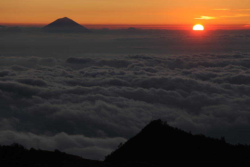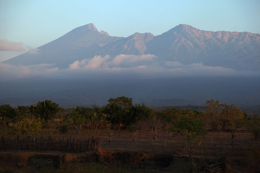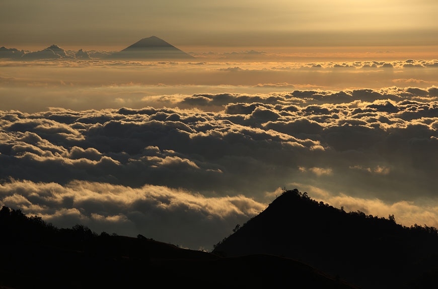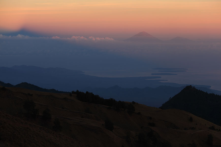 Rinjani's shadow with Gunung Agung and Gili islands |