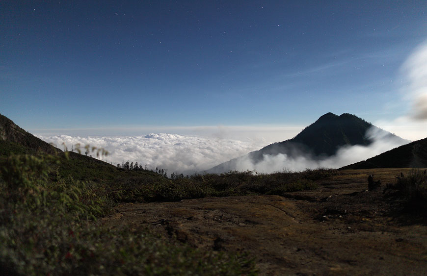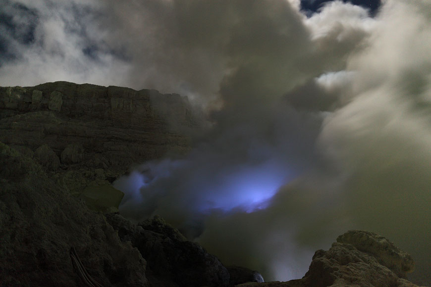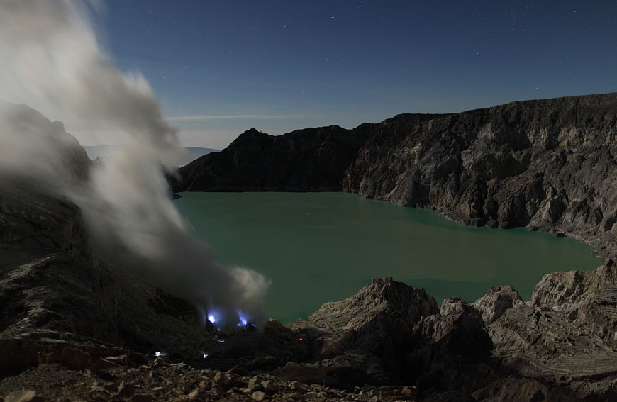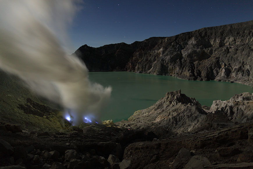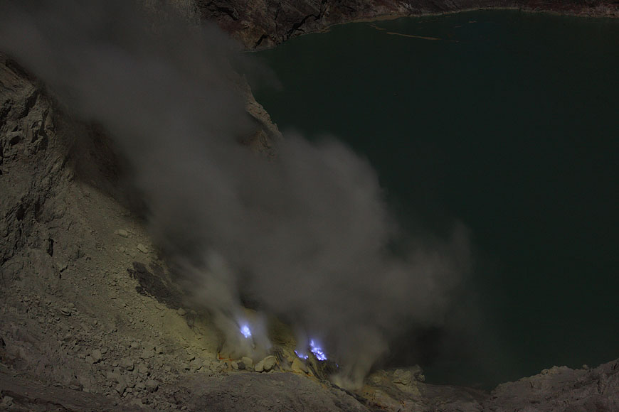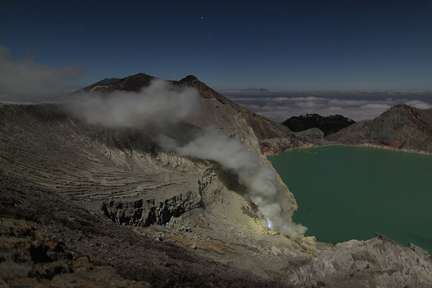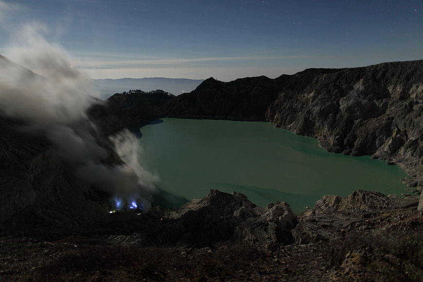 steaming Kawah Ijen before ascending |