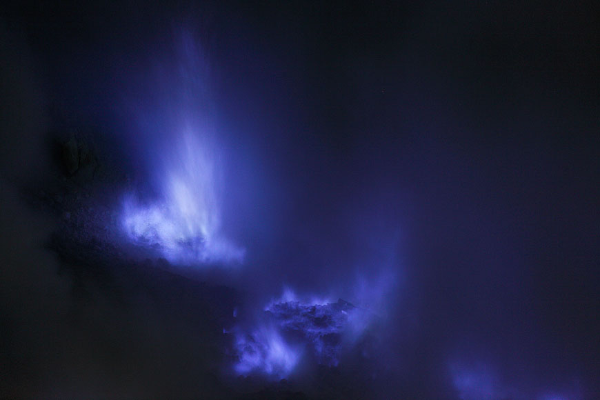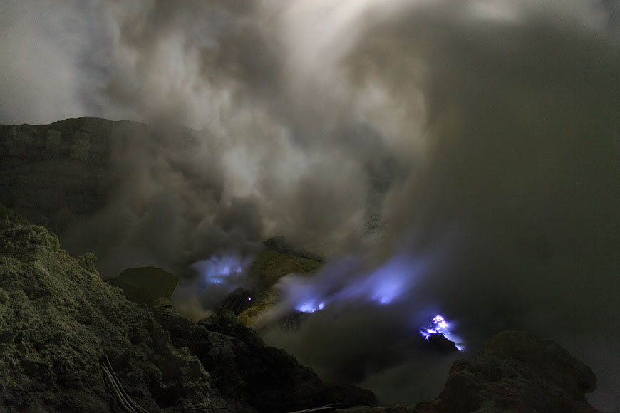 Richard photographing blue burning sulfur flares while threatening his lung