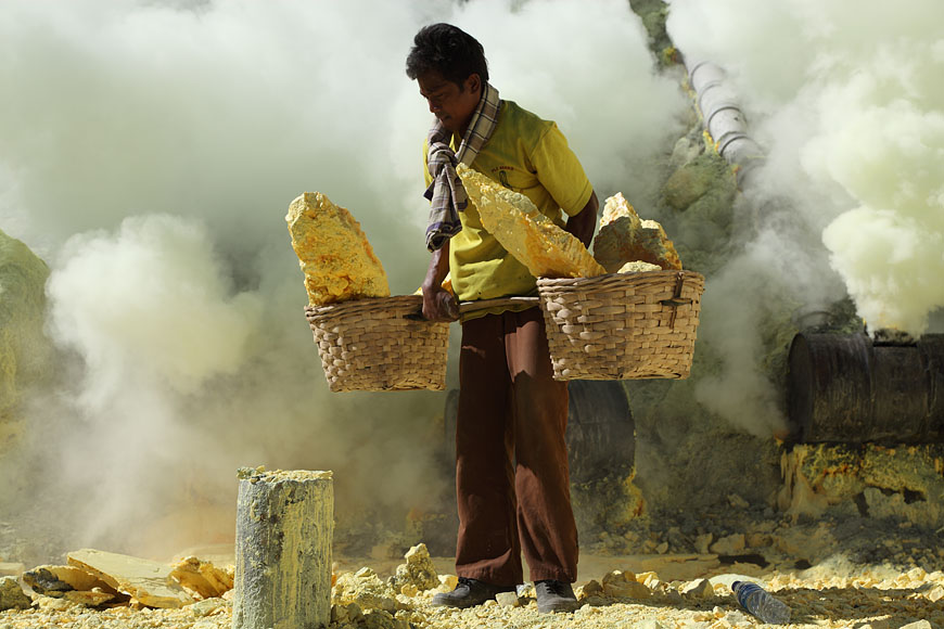 carrying up to 80kg sulfur per worker |