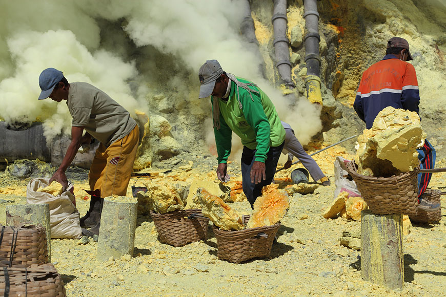 workers collecting sulfur |