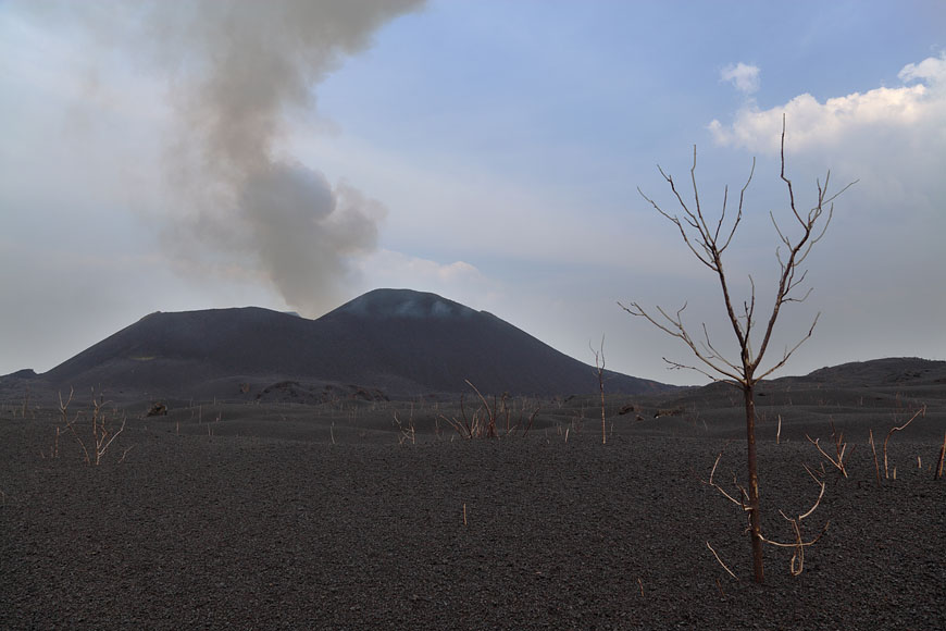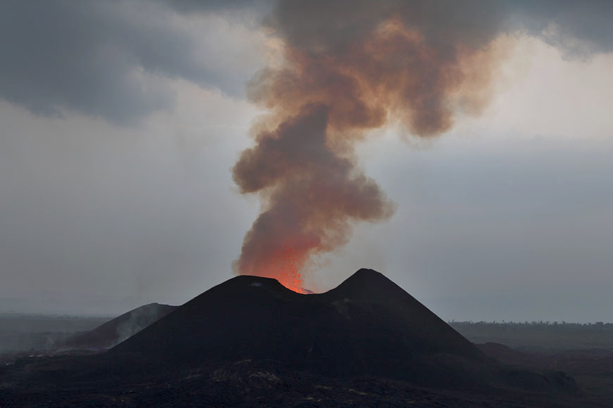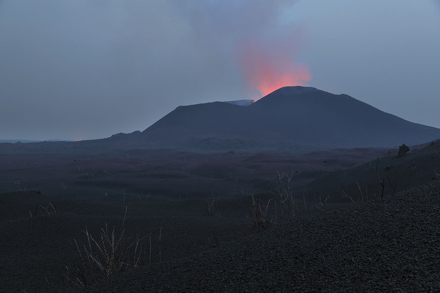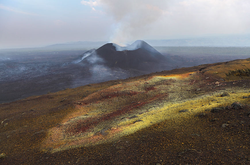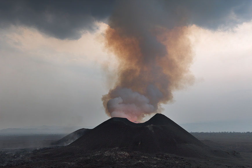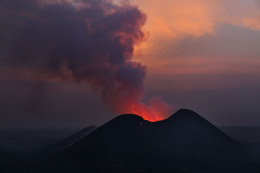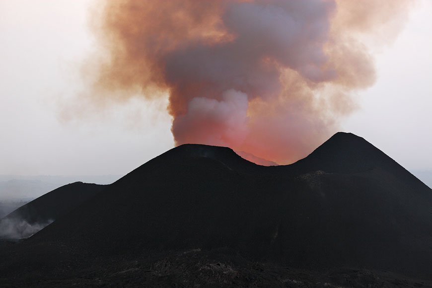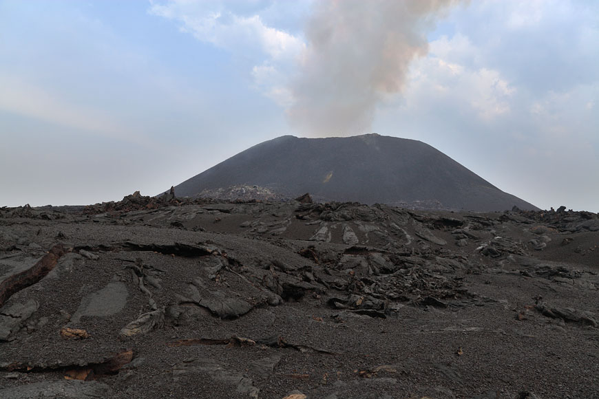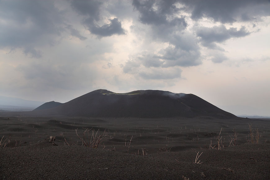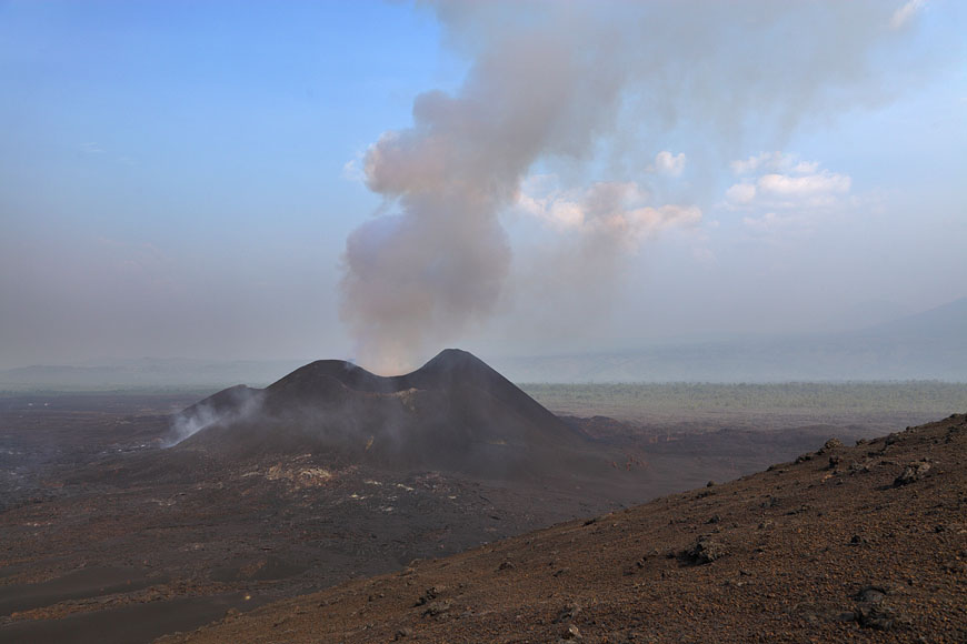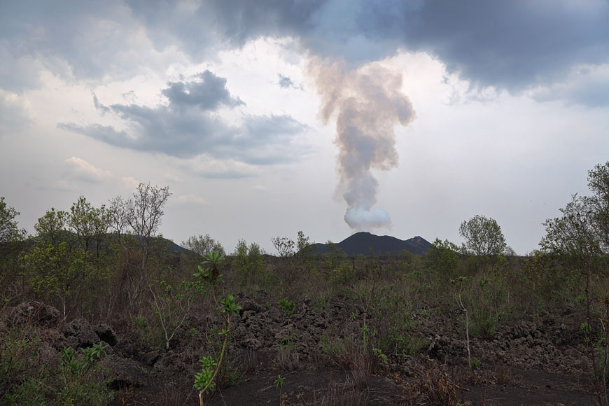 view to Nyamuragira main volcano with first, now inactive Kimanura craters