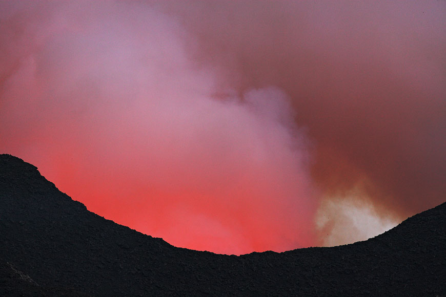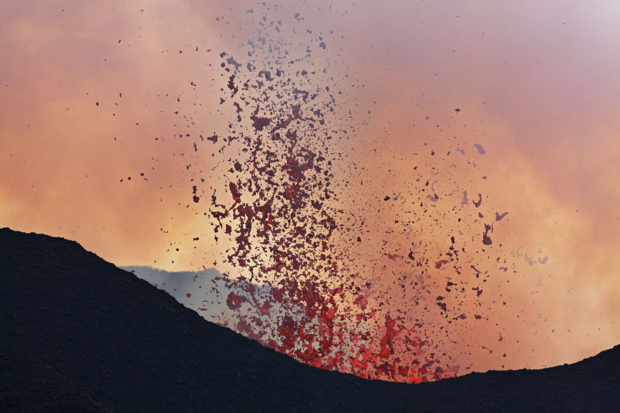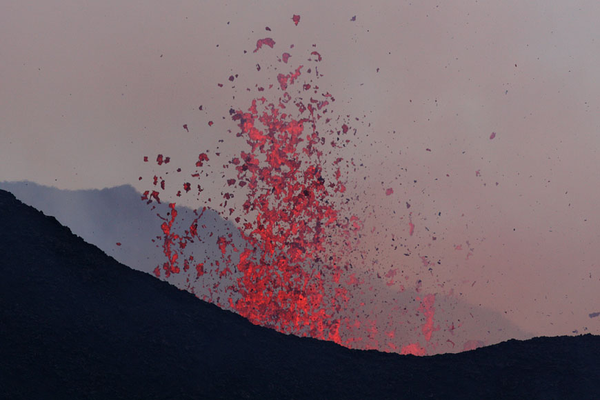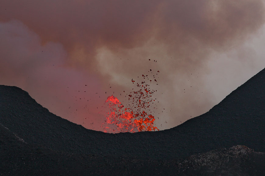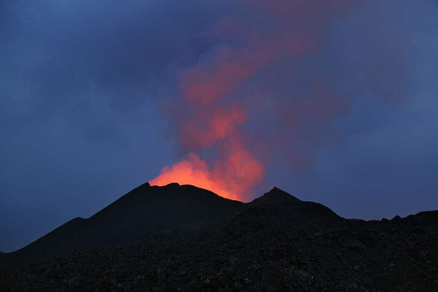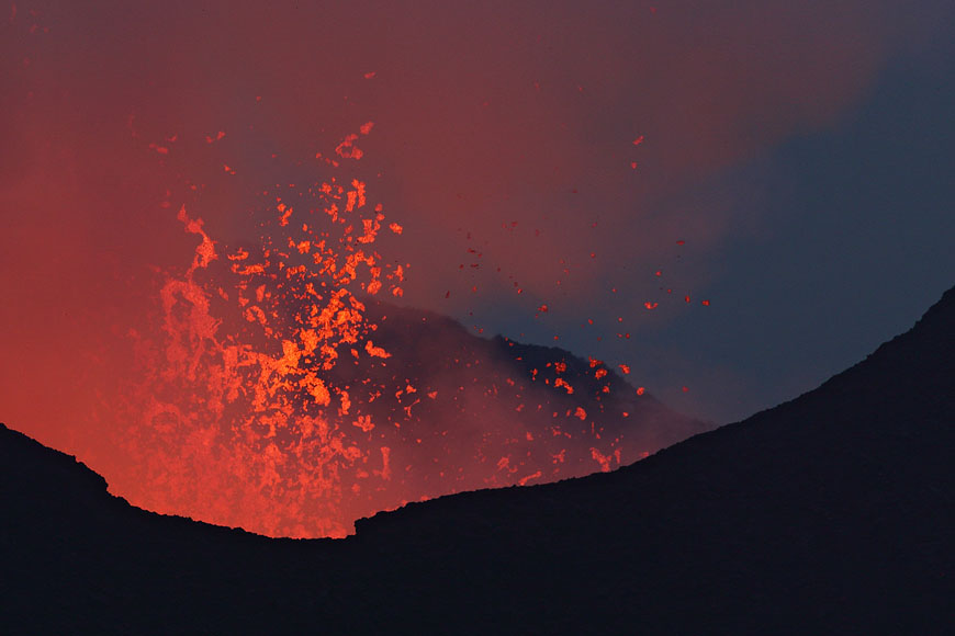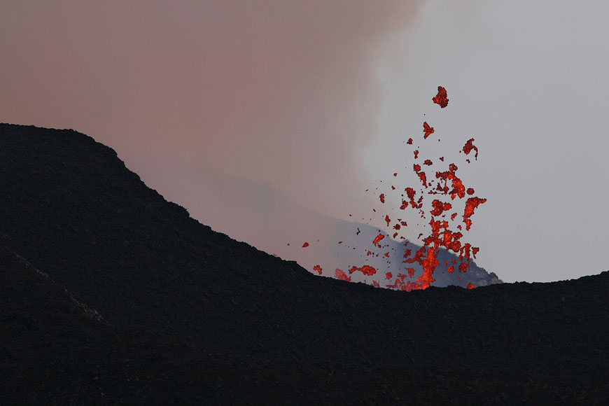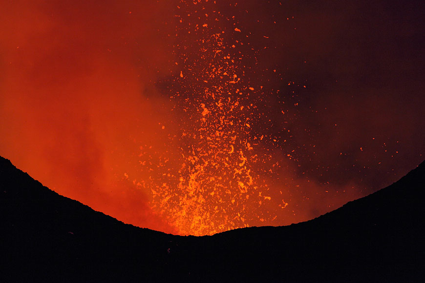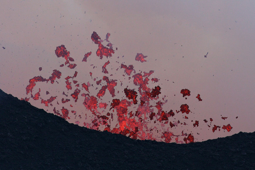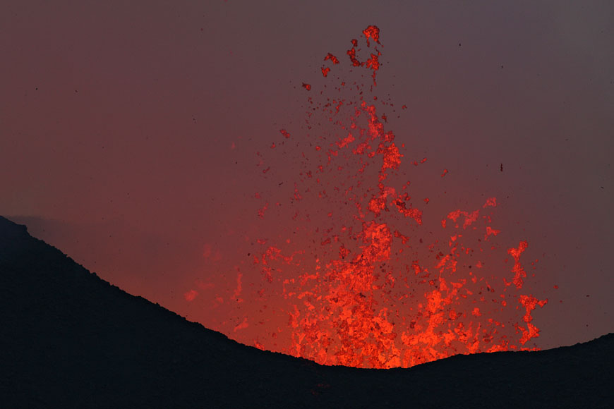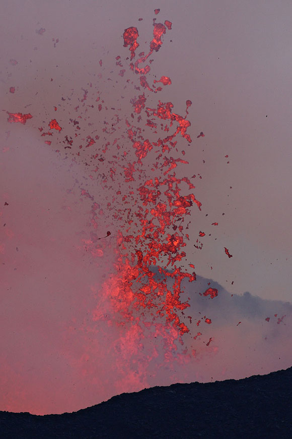 Lava jet escaping from permanently active lava lake inside northernmost crater |