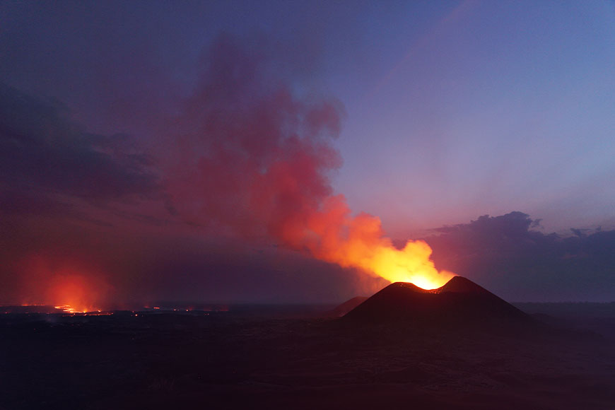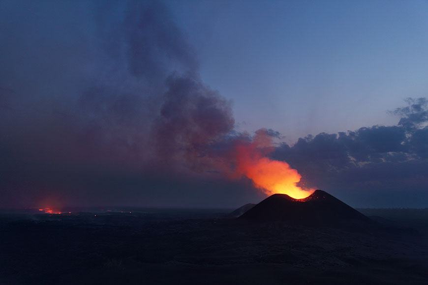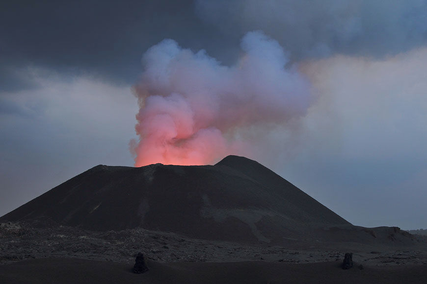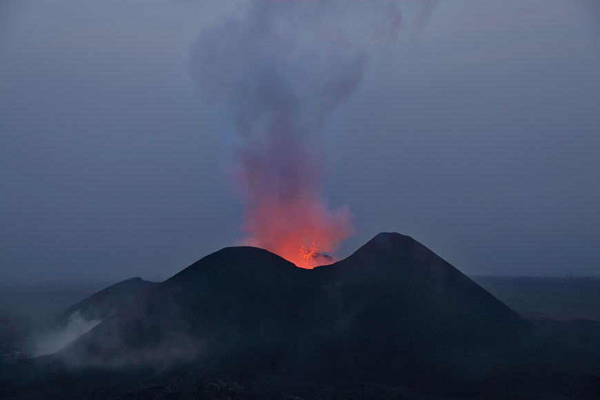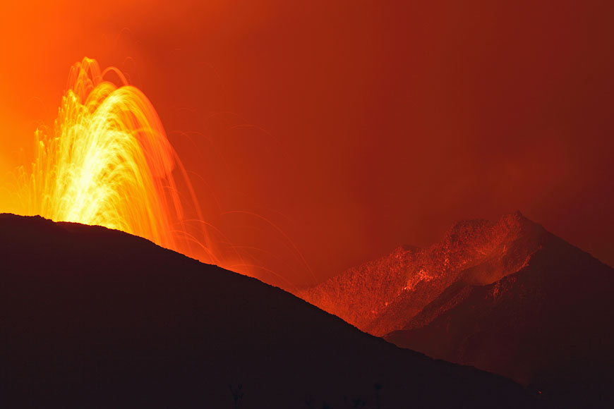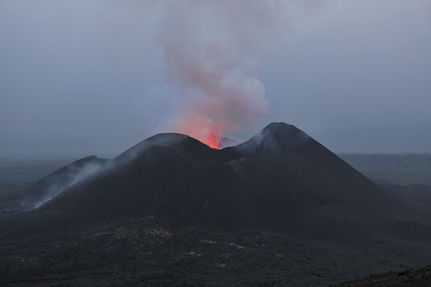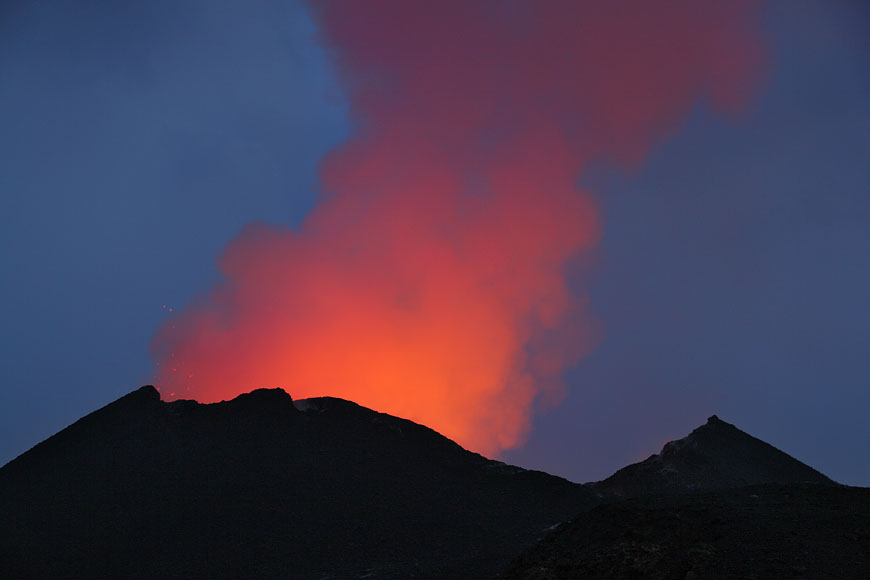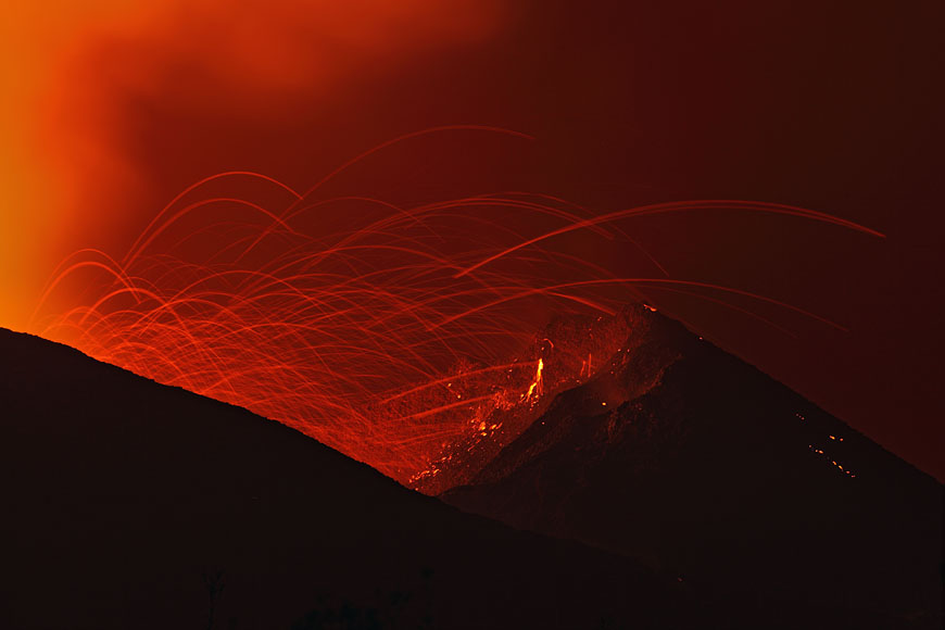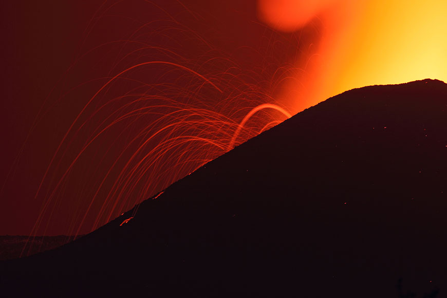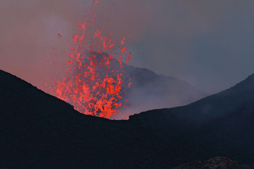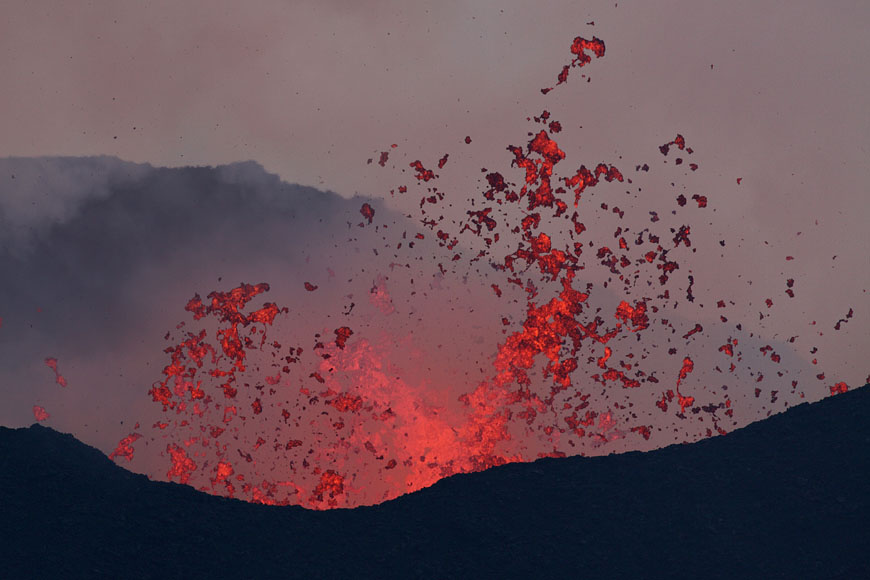 Lava jet escaping from permanently active lava lake inside northernmost crater |