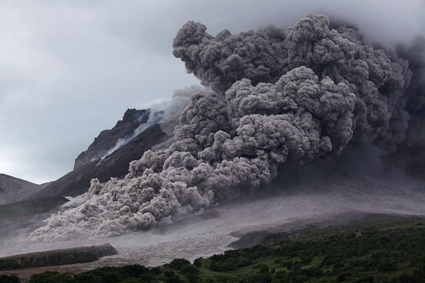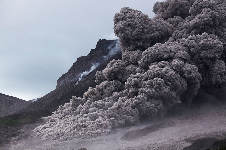 strong ash cloud develops |