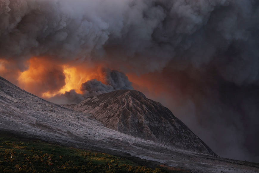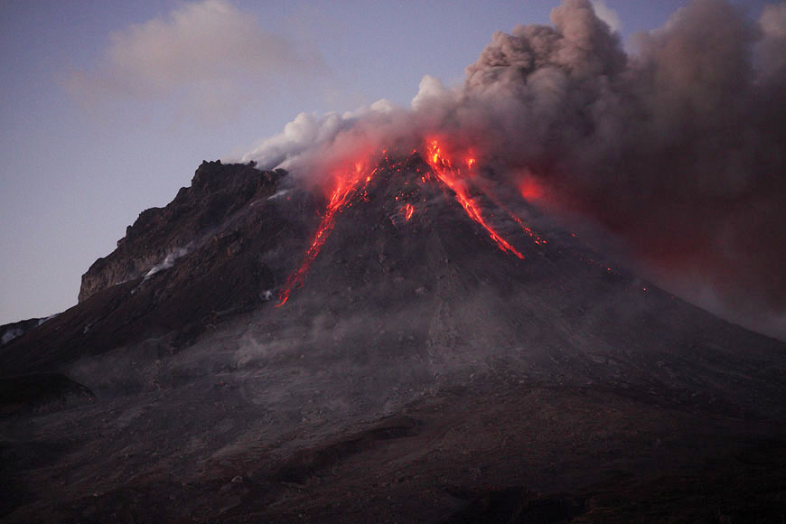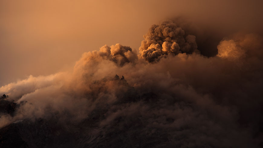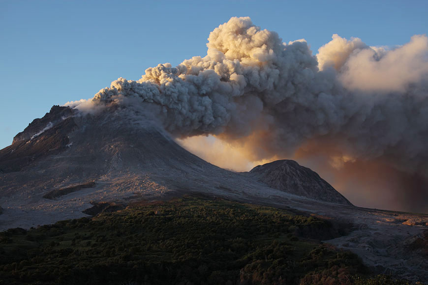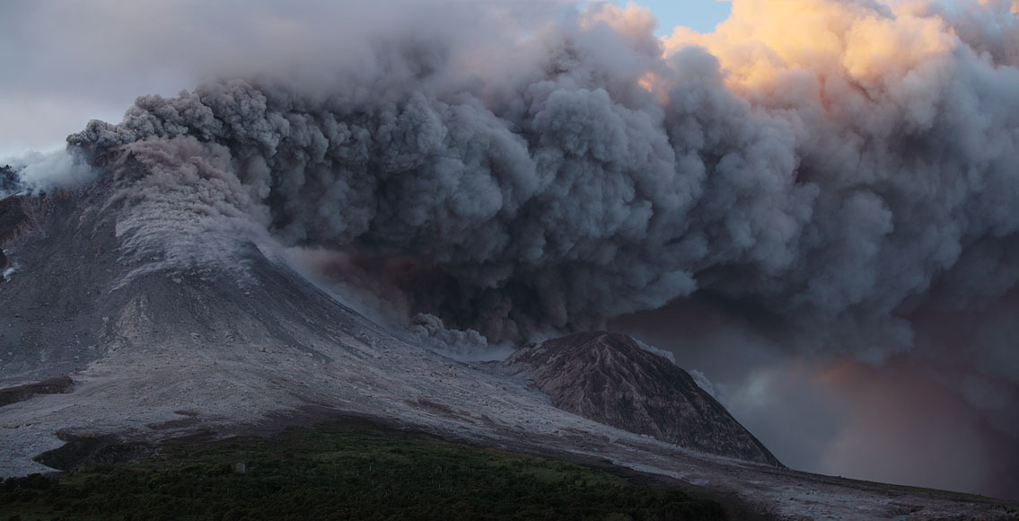 ash venting with dome spires in early morning light |