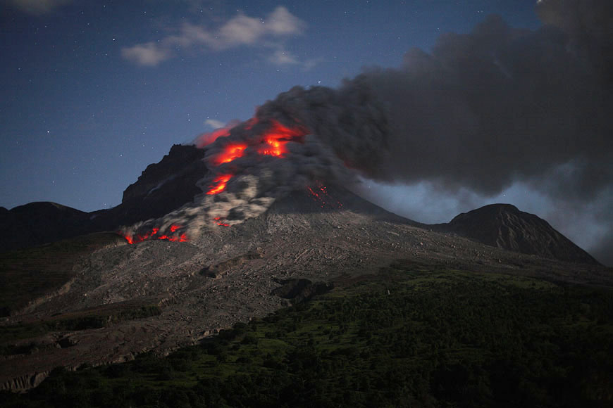 Pyroclastic Flow (PF) by night seen from Jack Boy Hill |