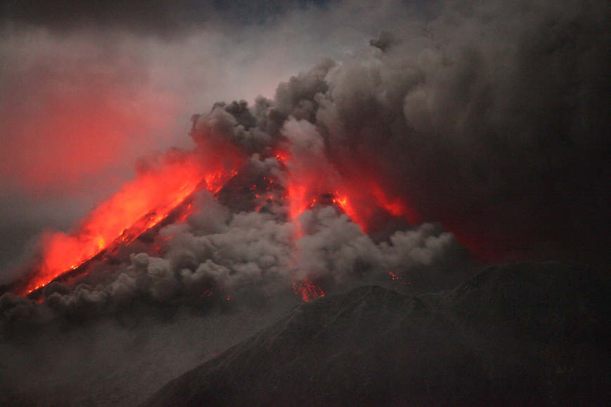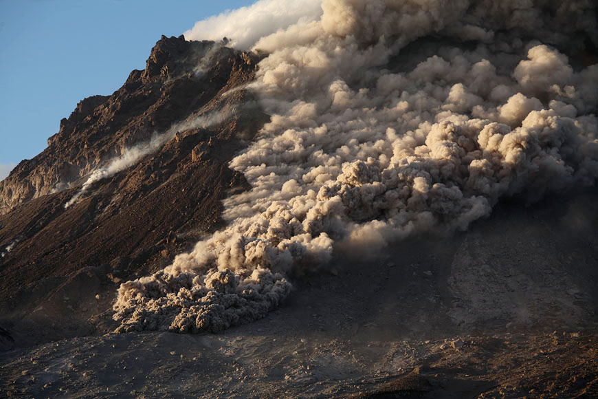 strong rockfall uplifts ash cloud |