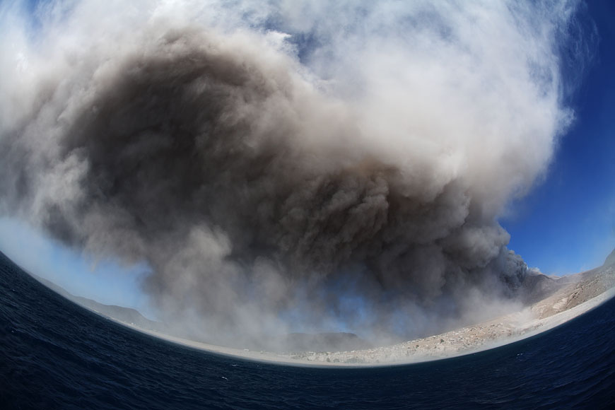 ash covers the whole sky, Fisheye view |